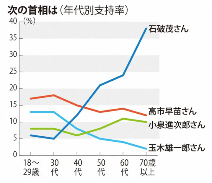 しかし最近の投票結果を見ると若年層の投票率が低く投票先も保守的で現状維持派となり中高年から高年齢者層では逆に投票率も高く批判票が多い結果となっています。